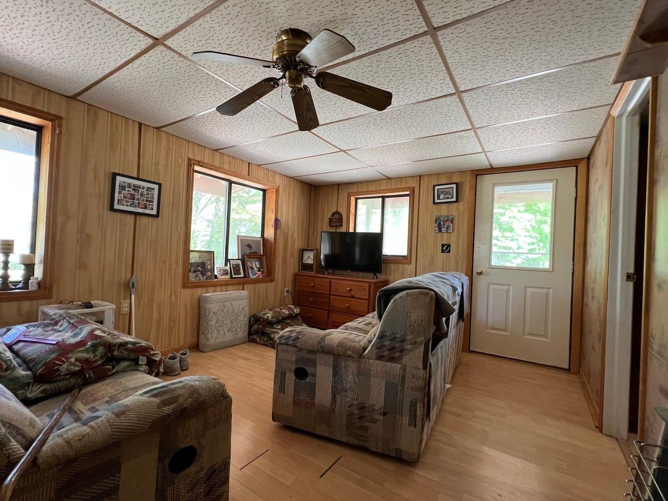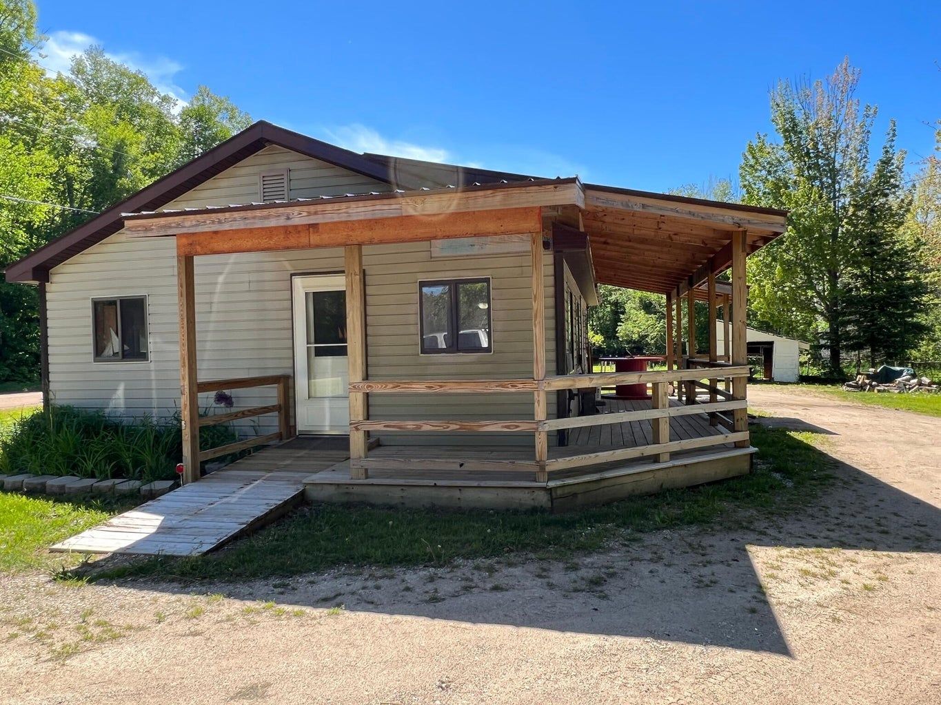Situated on approximately 5 acres with over 300 feet of year round road frontage, this 2 bedroom home is an ideal retirement home or one for an outdoor sports enthusiast. With direct access to the snowmobile trail, the property includes a large pole building ideal for storing one's machines and a repair area.