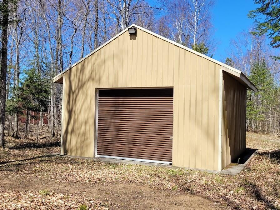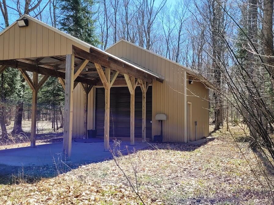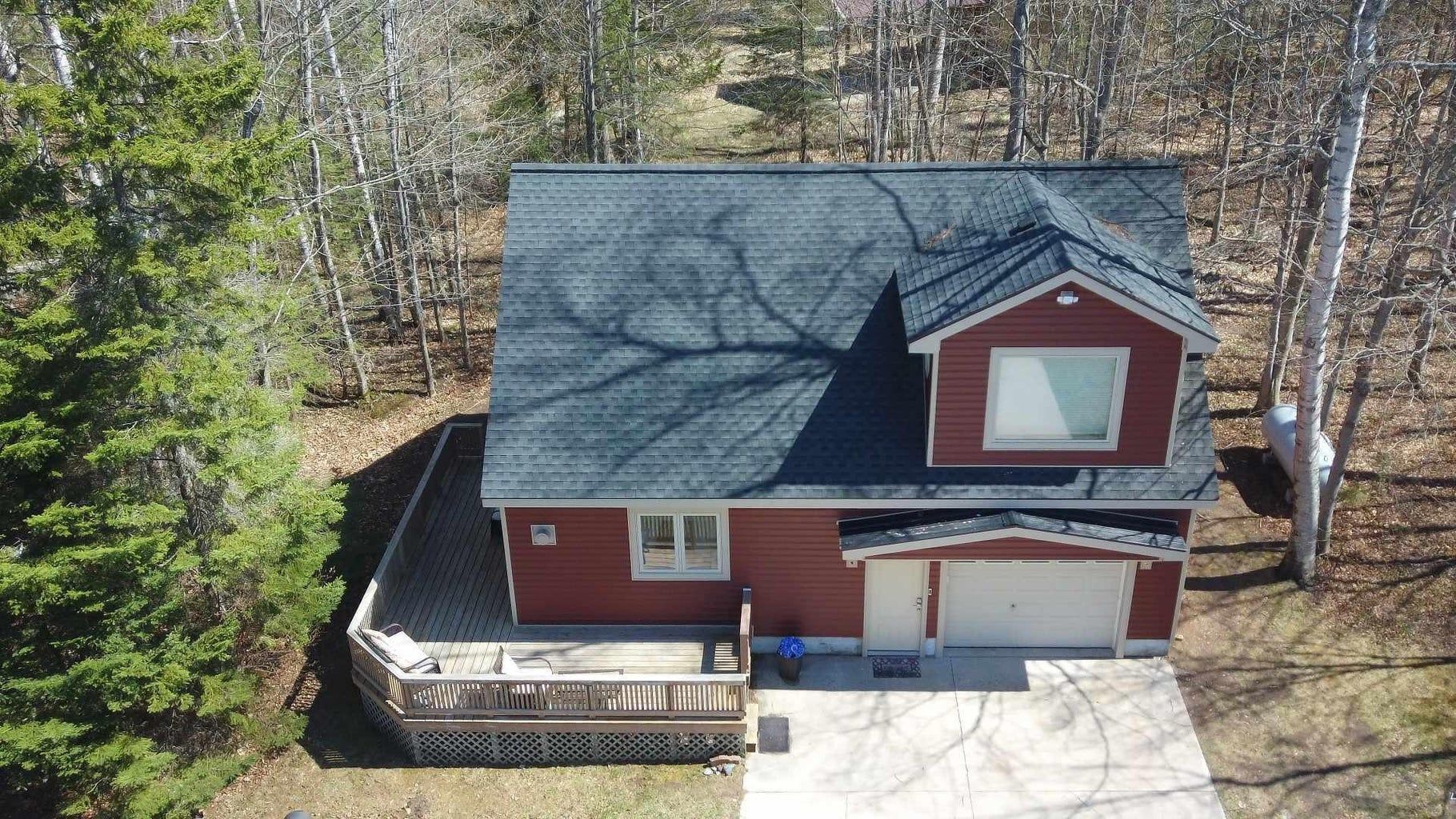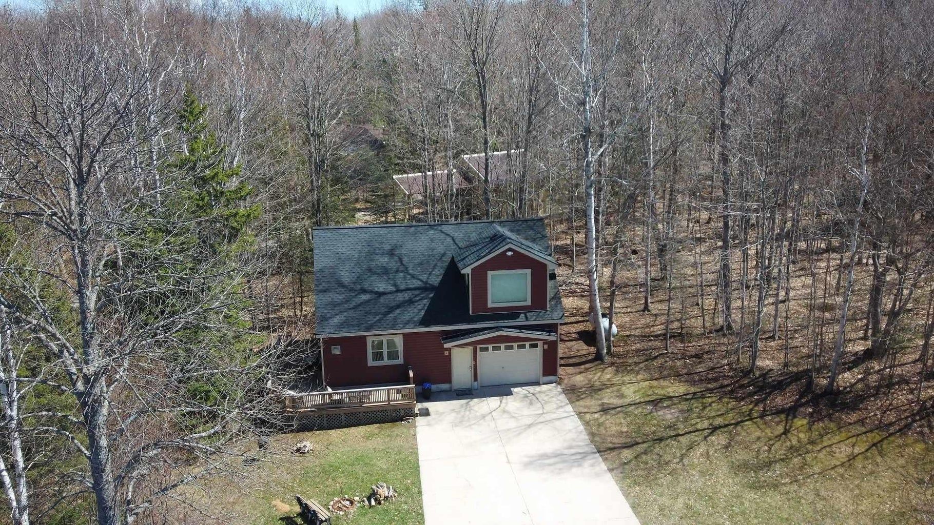 Newly remodeled exterior within walking distance to downtown on a 1+ acre, wooded lot gives you privacy to enjoy the deck, firepit & outdoor grill. This 2-bedroom + bonus area, is a wonderful all-season home. Three heat sources allow you to stay warm even during a power outage. Enjoy the large eat-in kitchen or sit on the wrap around deck and view nature in abundance. From the large picture window in the upstairs extra-large master bedroom catch glimpses of the Northern Lights or watch wildlife. In addition to closets, there are 2 large storage areas on the 2nd floor. Enter into a large mud room area next to the 1-car attached garage. Newer pole barn, with full electric, concrete floor, added shelving and additional covered concrete area is perfect for an RV or rec toys. Agent Owned.